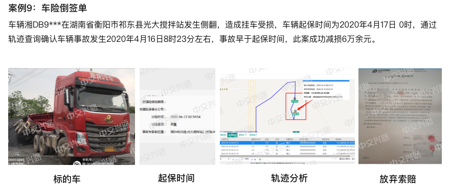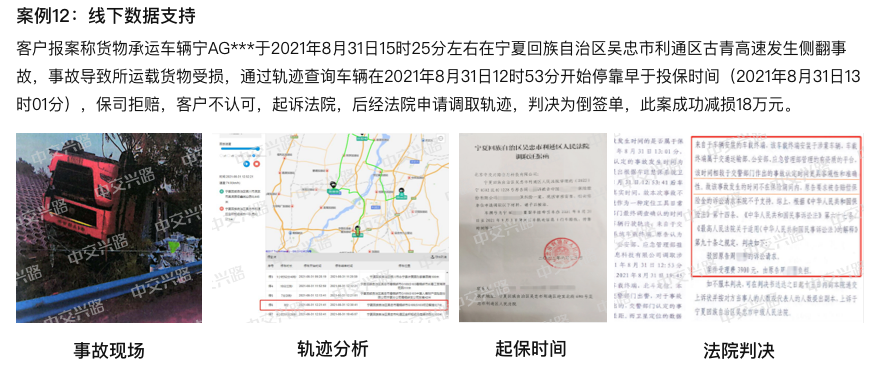 全国货运公共平台720万+辆重载货车实时监控,通过轨迹查询、欺诈评测等理赔风险识别工具,还原事故真相,准确识别欺诈风险,为险企货车承保经营降本增效,实现理赔效率和成本管控的双提升。